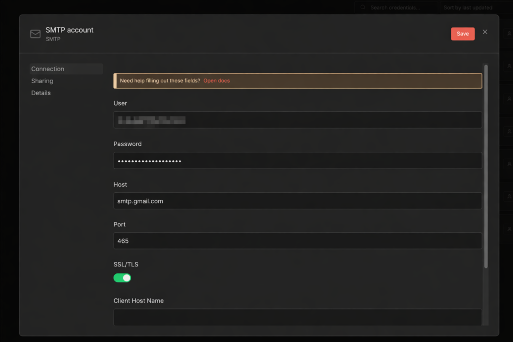 SMTP Gmail account - Operations: