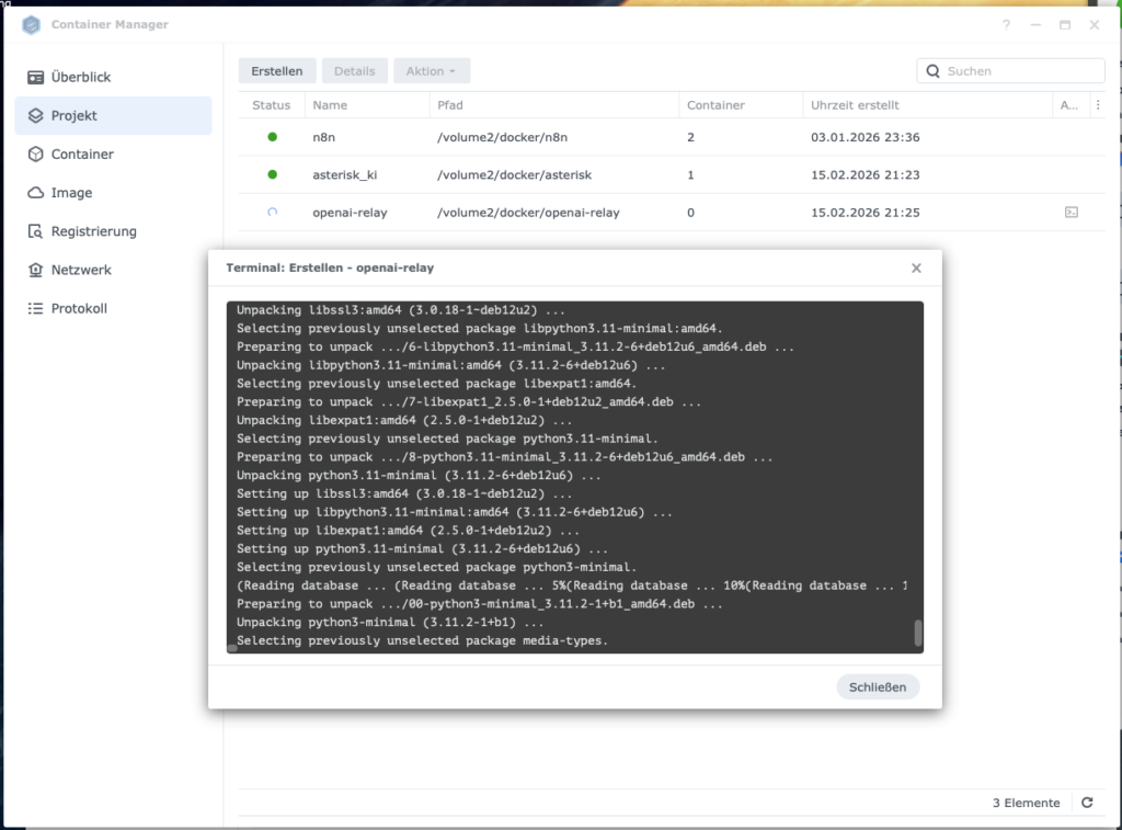 Starte den openai-relay-Container neu. Jetzt sollte es funktionieren.